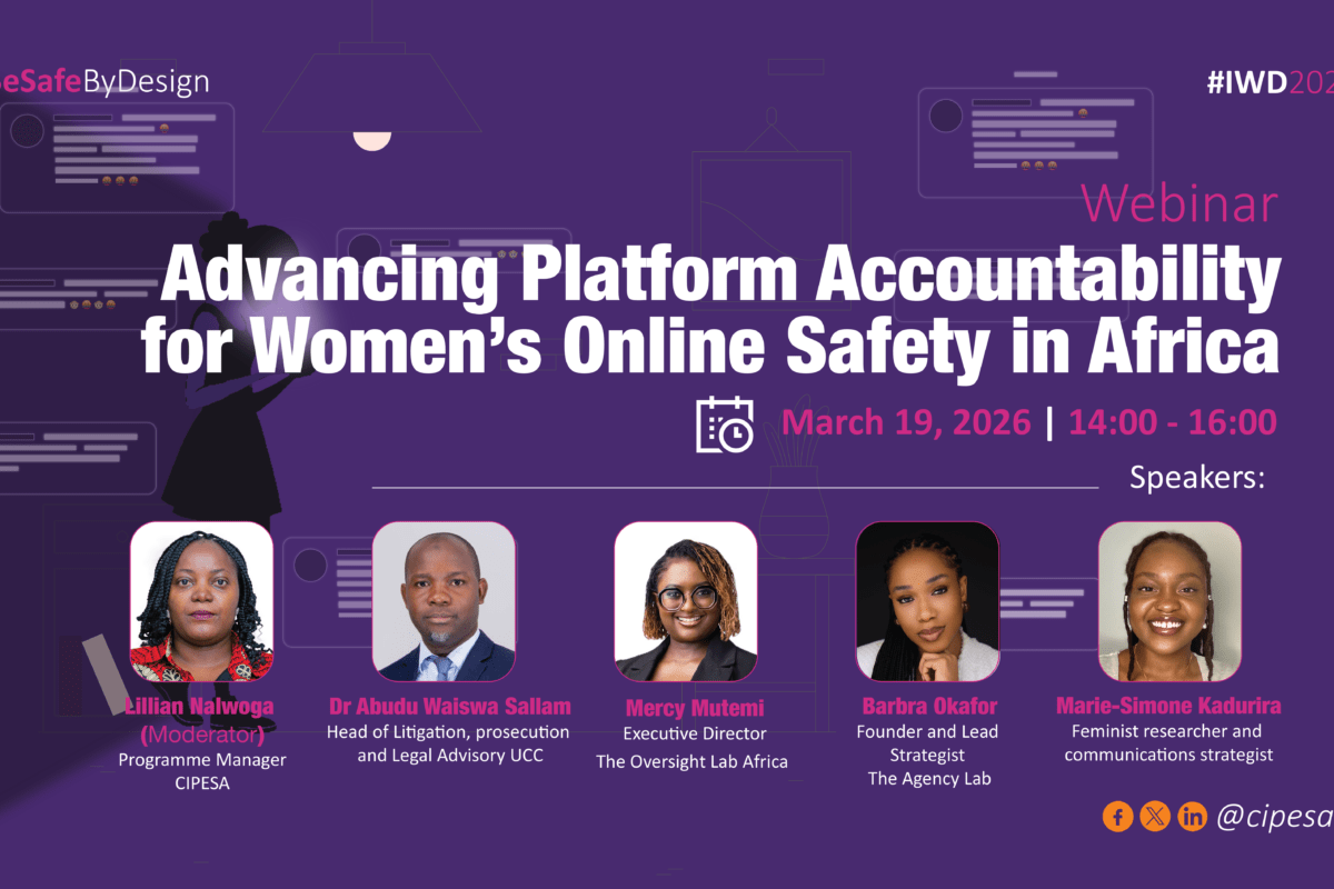 In support of this year’s International Women’s Day (IWD) commemoration, the Collaboration on International ICT Policy for East and Southern Africa (CIPESA) is hosting a webinar titled “Advancing Platform Accountability for Women’s Online Safety in Africa” on Thursday, 19 March 2026 (14:00–15:30 EAT). The webinar resonates with this year’s IWD theme: “Rights. Justice. Action. For ALL Women and Girls.”
